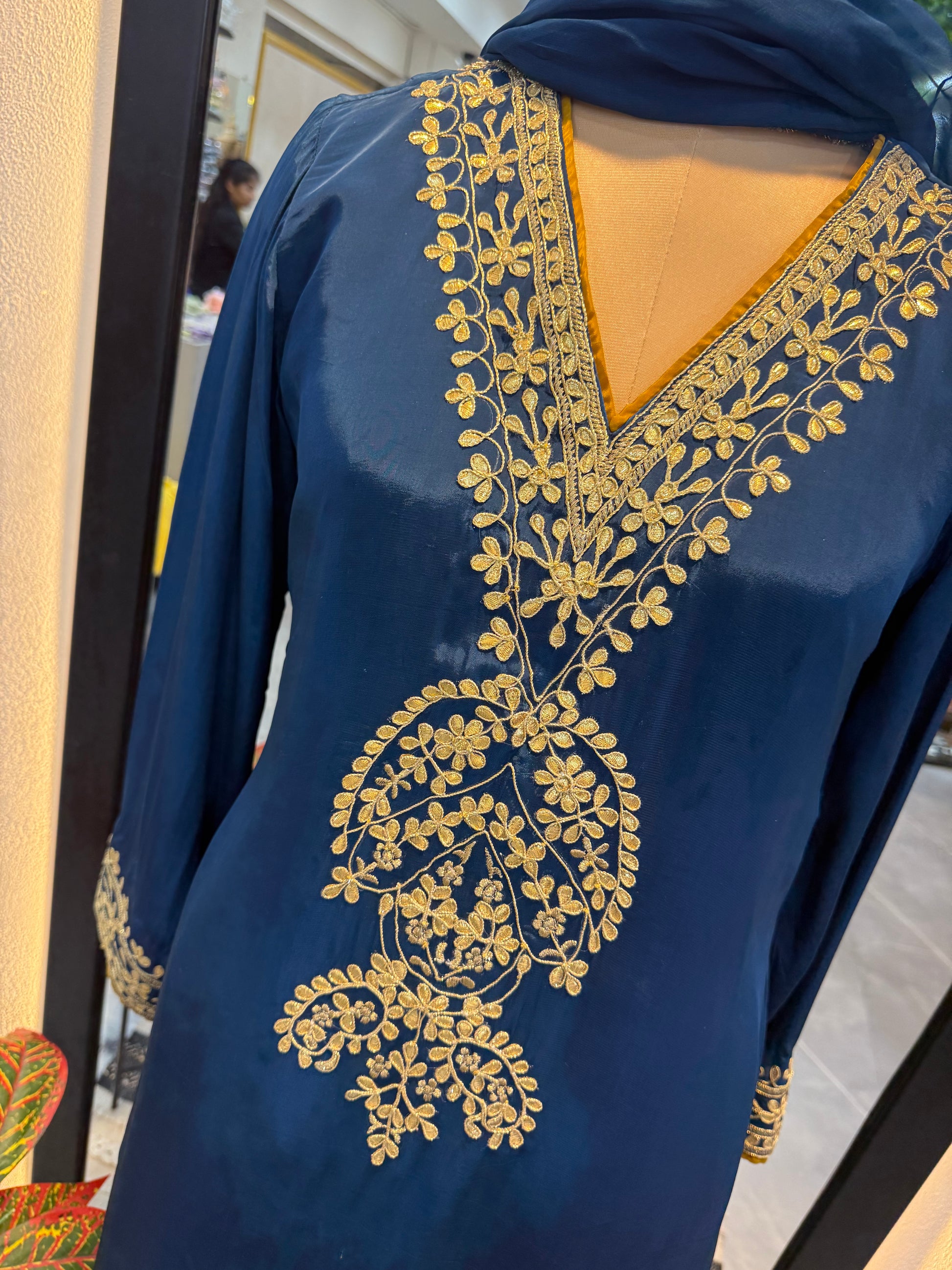 - Gota embroidery on neckline, sleeves and ghera